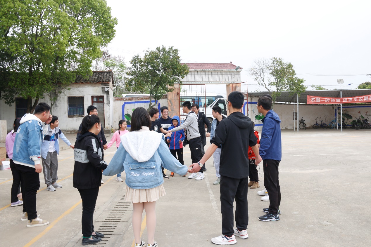 的大学生代表与藕塘小学的小学生们通过游戏的方式选择了自己的结对对象,并一起参与踩报纸、击鼓传花等小游戏,让同学们打破了界限,建立了友谊。