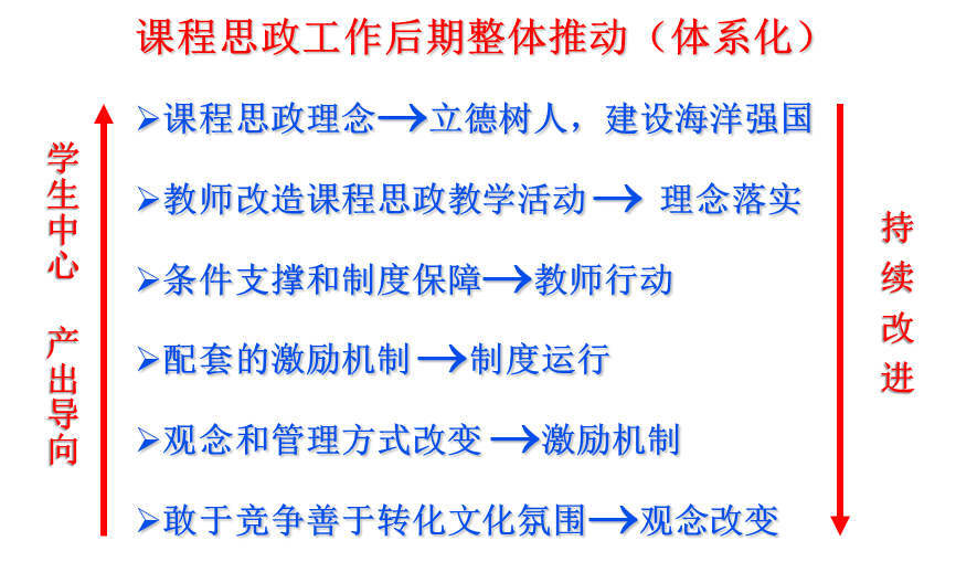 凝练出课程思政“一院一品”品牌:海洋强国传承创新、课程思政立德树人,并致力于近期完善建设,中期突出特色,远期树立标杆: