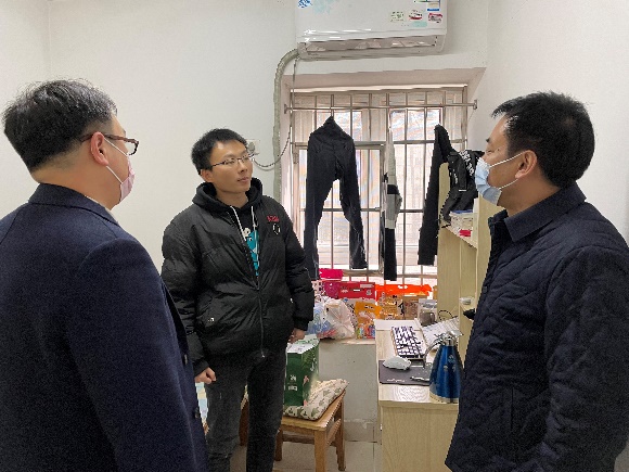 党委书记王作红、副书记谢宇翔、辅导员肖宇晨赴博士生公寓看望留校学生。