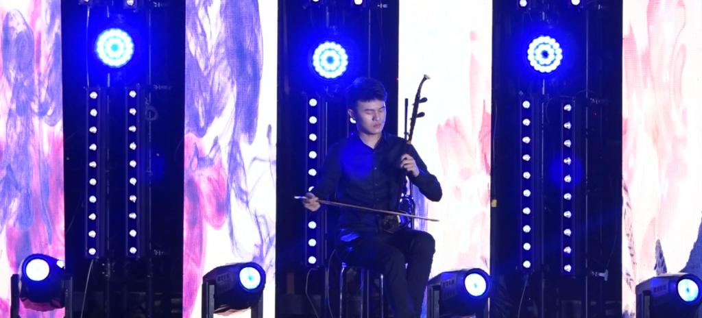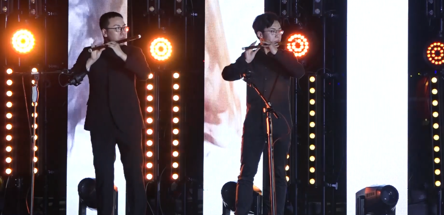 “此夜亭中响古韵,谁人不忆醉晚情”篇章一细数了历届晚会举办的盛况,表达了醉晚亭历经多次波折,但依旧初心不改的情怀。2011年第十四届醉晚亭民乐合奏《塔塔尔族舞曲》展现了热情奔放的塔塔尔族人民载歌载舞的场景,曲调活泼欢快,具有浓郁的异域风情。2016年第十八届醉晚亭笛子合奏《牵丝戏》用一段哀婉深情的笛音编织出傀儡翁和傀儡纠缠一生的凄美绝恋。2019年第二十一届醉晚亭笛子二重奏《跑旱船》极具陕北风情的曲调,生动形象地描绘了陕北人民跑旱船时的欢快场面,展现了劳动人民奋勇争先的意志。