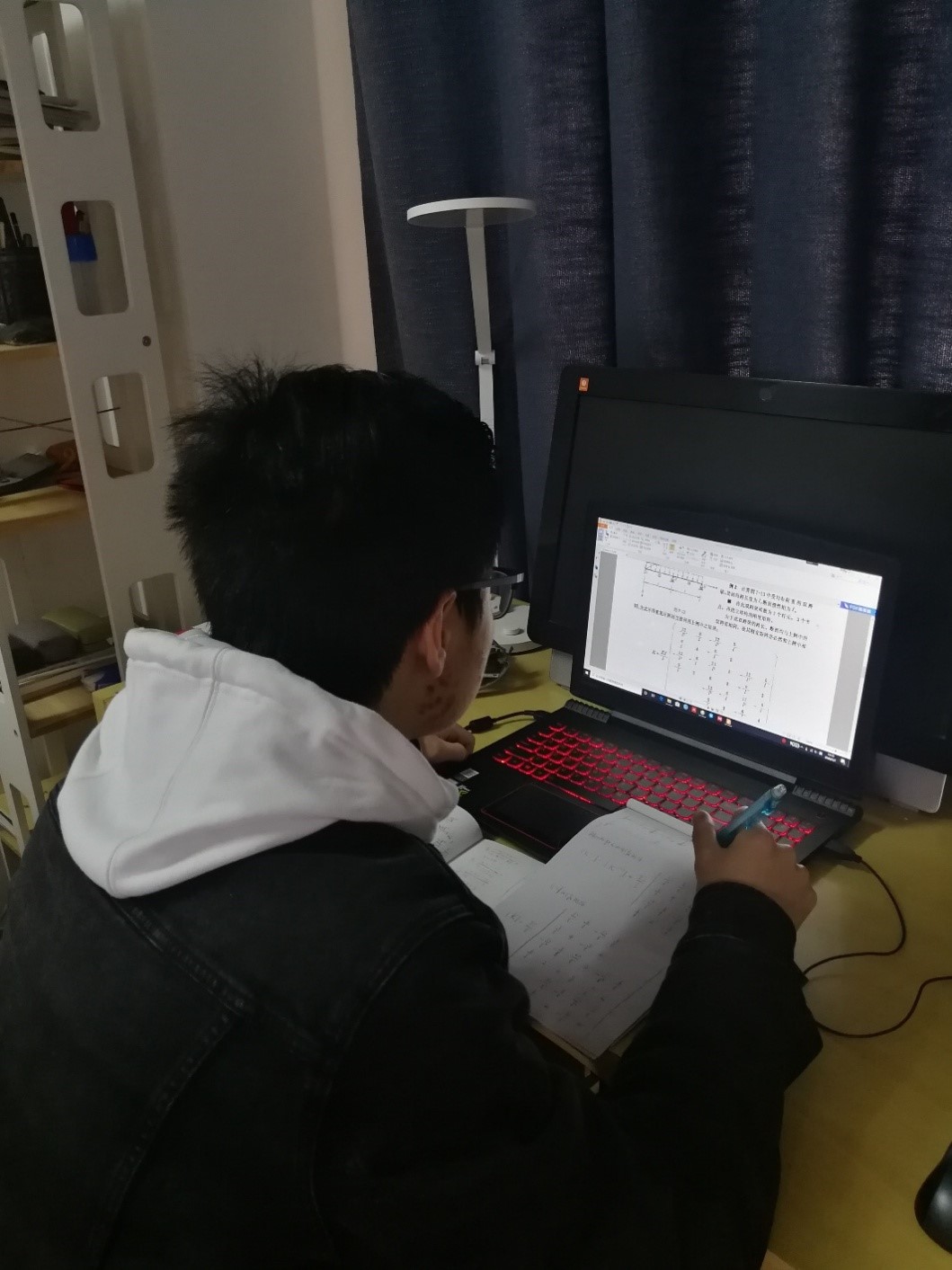 已经上了三周的网课了,这三周的时间里我也有不少的感触和体会,因为身处武汉的缘故,我深刻地体会到了这次疫情的残酷,在这种时候我也为我还能在网上进行学习而感到幸运,对于我这样大三下正在准备考研的学生而言,时间是很紧迫的,在平时我争取能在早上八点前起床,学习时间和在学校保持一致,尽量提升自己的效率,在上网课方面,我们的几位老师都非常的认真负责,船体结构强度朱翔老师讲课非常细致,还会帮助我们复习一些以前学过的公式,这也使我能更好地理解课程内容,每节课前的复习也让我对这门课的内容掌握的更加牢固,有限元课程的代天骄老师经常征求我们的意见,改进上课方式,上课时的板书和提问互动的环节也都让我注意力更加集中,提高了上课的效率。这也让我从刚开始上网课的不适应到现在能够更加高效的听课,在完成课后作业后,我会利用整体的时间来准备考研的内容,尽量做到不熬夜,以免影响第二天的学习。有的地方还要在之后的学习中改进,努力提高学习效率,也希望能够早日恢复正常的上课。