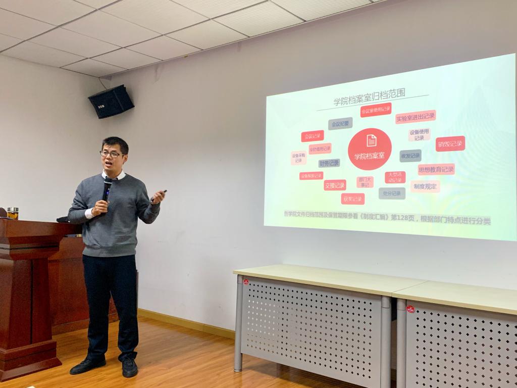 档案管理工作中存在的突出问题,收集机关人员对日常档案工作存在的疑问,以便更有针对性地开展培训。范智新首先介绍了档案管理工作的重要性和实用性,并分别从档案的概念及应用、学校档案基础工作、足球直播857