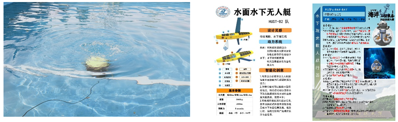 在团队成员多日的团结协作、不懈努力下,HUST B1和HUST B2两队在此次比赛中斩获第三名及第九名的优异成绩,分别荣获大赛一、二等奖。队员通过参加参赛,培养了认识海洋、关心海洋的兴趣,增强了海洋领域科技创新实践能力,也提升了海洋机器人创新团队的队员合作水平。