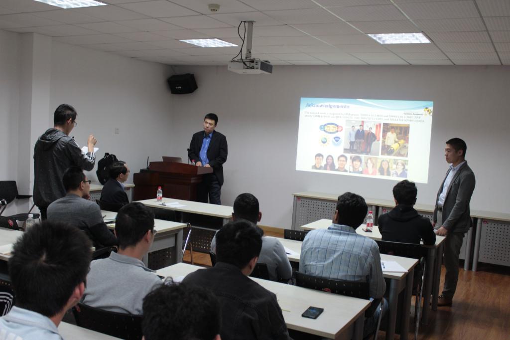 报告会上,Fumin Zhang教授首先介绍了两种传感器系统固定传感器系统和移动传感器系统以及这两种传感器系统提供的欧拉和拉格朗日数据流,并讨论了这两者的特点。接下来Fumin Zhang教授展示了海洋机器人平台与水下通信和网络技术集成的最新进展。未来的研究需要开放的且成本低廉的试验基础设施,这种基础设施整合了海洋机器人平台,水下声学设备和水下网络设备。最后Fumin Zhang教授讨论了Cyber Maritime Cycles领域所面临的三个主要困难:模型未知和不确定性、信息传递的局限性、定位和跟踪的不准确性。报告结束后,Fumin Zhang教授对同学们提的问题做了详细的解答。