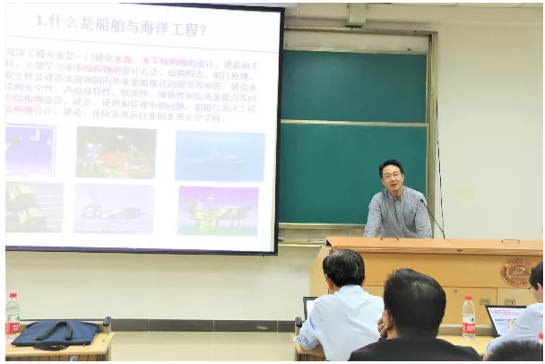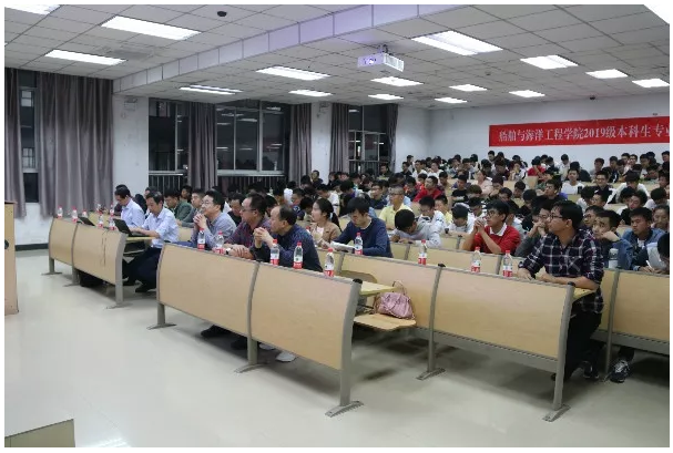 专业的主要研究方向和课程体系设置情况,让同学们看到课程学习和未来研究方向之间的关联性。接着介绍了建院以来我院取得的辉煌成就。他列举了中船重工集团副总经理吴晓光、中船重工第七一九研究所副所长张锦岚、中船重工第七六〇研究所副所长黄群等校友的杰出成就和事迹,鼓励同学们向优秀校友学习,努力学习专业知识,逐步实现自己的人生价值。随后,李威结合2019届本科毕业生就业情况,分析了专业就业前景及发展方向,解答了同学们心中最为关切的发展就业问题。最后,他指出,船海学子们应奋发向上,树立远大理想,参与到海洋强国事业中去,为中国梦的实现奉献自己的一份力量。