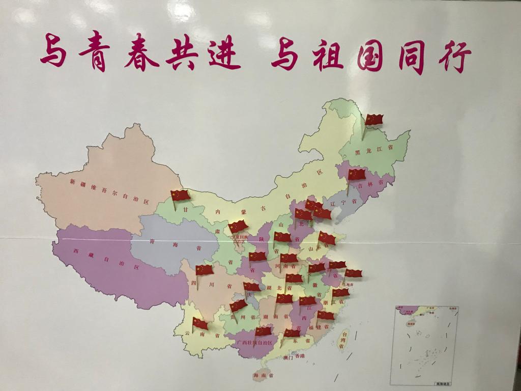 各支部汇报展示完毕后,黄群班党员代表刘娇、李乐成、孔典、杨立春为大家带来诗朗诵《祖国,一首唱不完的赞歌》。与此同时,党员代表将红旗插在中国地图上,同志们的足迹犹如星星之火遍及全国,更象征着华中大学子扎根祖国大地,为实现中华民族伟大崛起而奋斗的决心。