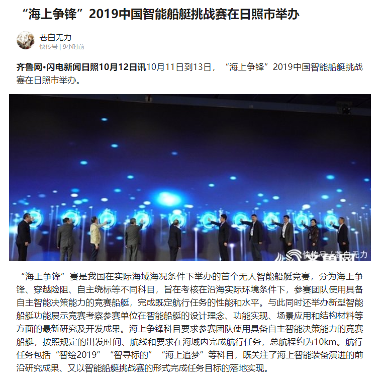 本次比赛,在山东日照市海边的实际海洋环境中划定比赛区域和场地,对智能无人船抗风、浪、流的能力及在实际运营环境下绕障、避碰、识别、通讯等功能均提出了较大挑战,赛事难度大,对参赛队伍技术要求高。