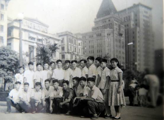 63年8月60级1班学生赴青岛北海舰队实习途中合影