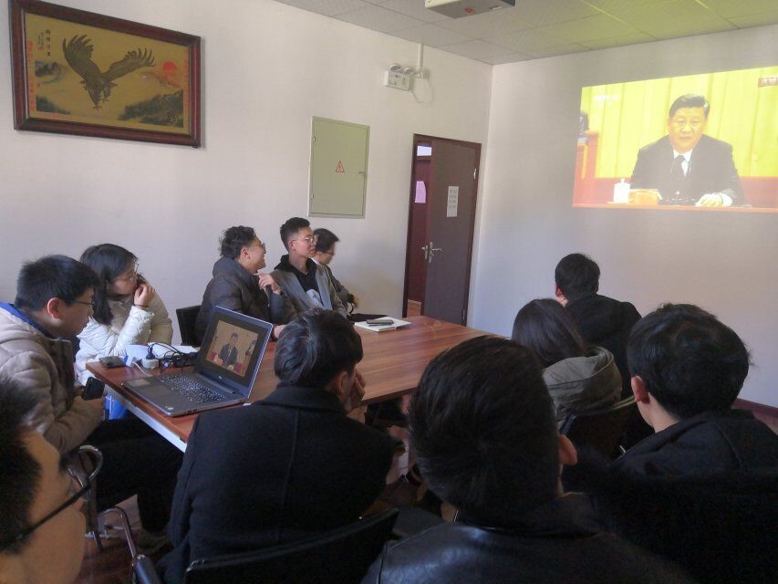 组织全体师生观看十九大开幕式直播,以东二楼足球直播857