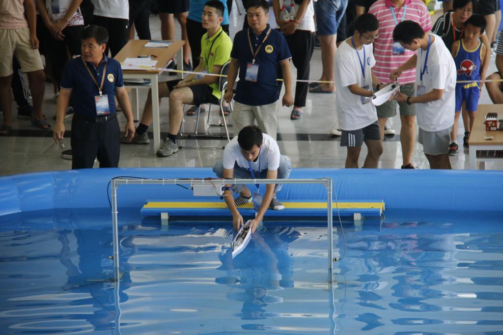 本次大赛共分为“新概念创意设计”“航行器设计与制作”“舰船模型智能航行”“名船名舰模型仿真制作”“船模竞速赛”“帆船模型竞速赛”“对岸火力支援模拟竞赛”共7个组别。“捕捉达人ROV”“无舵式弯曲转向纯风力帆船”“喷水推进双体无人船”“水下搜救航行器”等设计与制作类作品广受专家好评。“华中大1号”智能航行类小艇准确并快速通过装有红外和超声引导信号门,博得现场热烈掌声。模型制作类中,学生纯手工制作“武汉号”驱逐舰及“向阳红10号” 万吨级远洋科学考察船参赛,体现了华中大船海学子扎实的船型基本知识与优秀的动手能力。