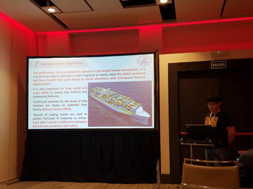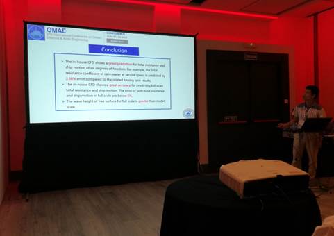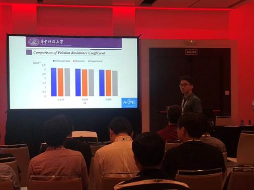 我院14级本科生余嘉威,刘李为和张航在该顶级学术盛会上宣读了自己的文章,题目分别为“Unsteady Viscous CFD Simulations of KCS Behaviour and Performance in Head Seas”,“Numerical Simulatuon of Hydrodynamic Performance of Multi-hull Catamaran with 3DOF”和“Scale Effect Studies on Hydrodynamic Performance for DTMB 5415 Using CFD”,引起了各国同仁的广泛关注,宣读完毕,他们进行了热烈地讨论与交流。
