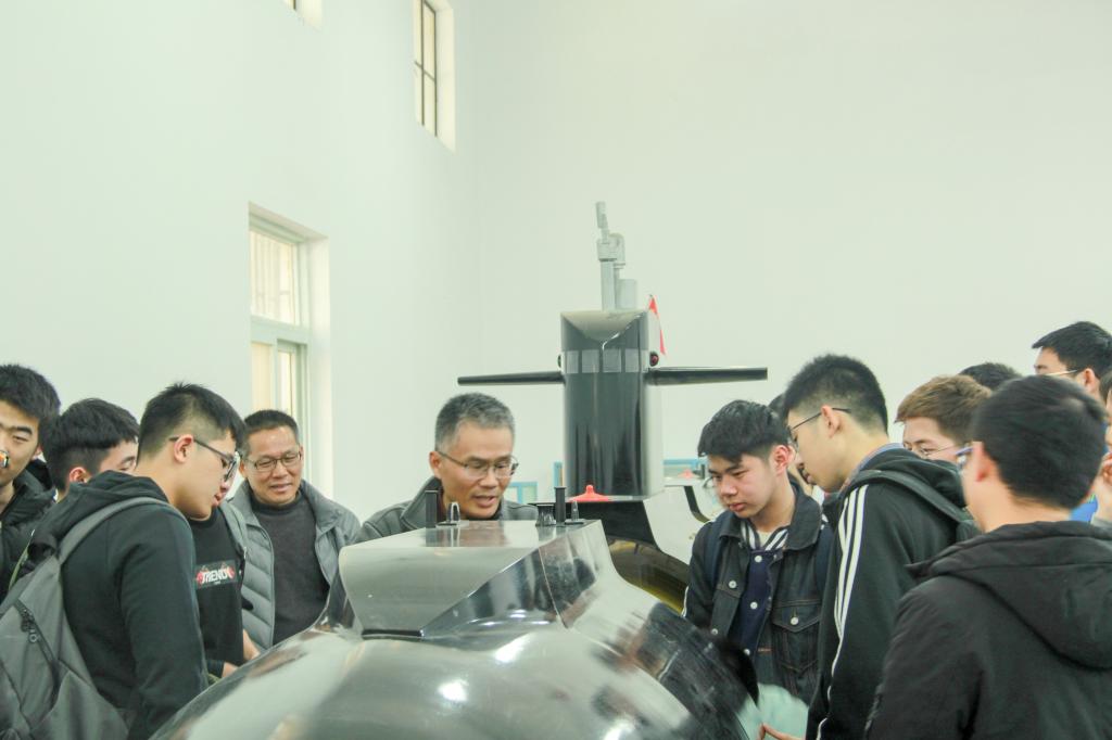 系主任李天匀教授深入浅出地为大家讲解潜艇的内外部结构、各部位的功用,幽默的讲解时不时引来大家的阵阵笑声,气氛欢乐而融洽。