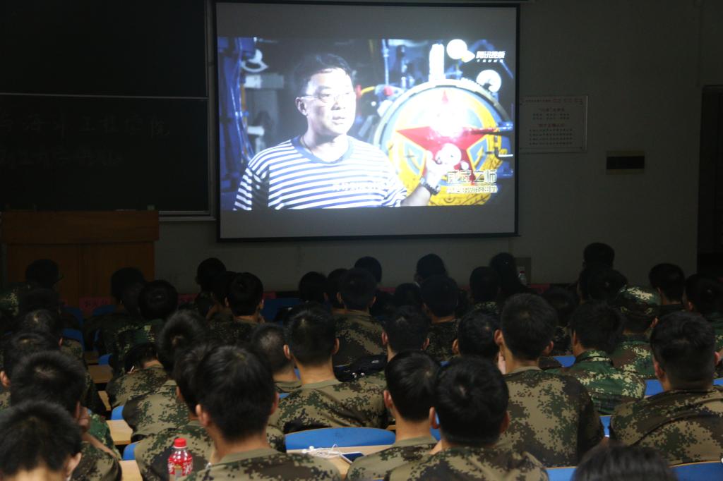 通过观看《驶向深蓝》,新生们看到了从焊工到工程师,一个个大国工匠,从设计到交付部队,在舰艇制造过程中默默做着贡献,为建设强大海军和建成海洋强国而奋斗着。