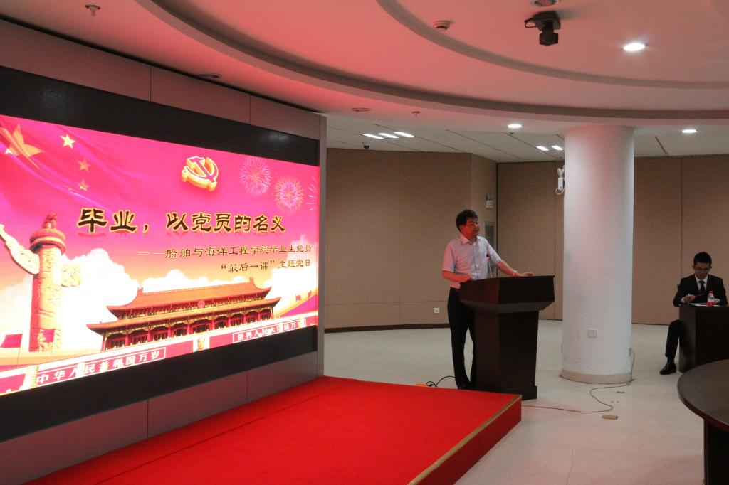 在激昂的《毕业,以党员的名义》主题诗朗诵后,与会的领导老师纷纷寄语船海学子。解孝林院长希望毕业生党员们把握船海行业大发展的时代,努力成为国家发展的栋梁之材;王学东副部长送给大家“学习”二字,希望党员同学们时刻不忘提升自己;敬鹏飞副部长勉励船学子为祖国未来的国防事业贡献力量;杨飞老师则亲切的告诉大家从此有“校友”这个共同的名字,学校永远是华中大人共同的家;萧莉书记送给毕业生党员“报国、敬业、奉献”六个字,希望大家常怀感恩之心,关心关注母校发展,鼓励大家不忘初心,继续前进,牢记自己的党员身份,努力深造,积极工作,做对社会有用的人。