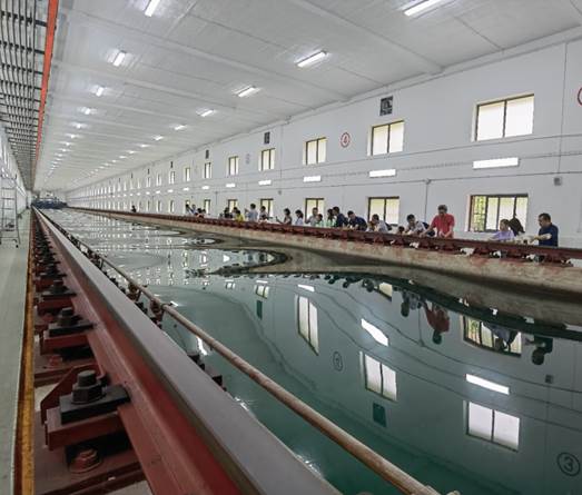 6月1日,中国船级社武汉规范研究所同仁们带领同学们,来到我院船模拖曳水池实验室开展科普知识实践活动。活动包括水下机器人演示,船型讲解、流场演示、造波演示、开展爱国主义教育,宣传节能减排的环保理念等等。我院实验中心主任冯大奎教授、高级工程师宋磊带领学生先后参观了舰船模型展厅、流体力学实验室、船模拖曳水池。