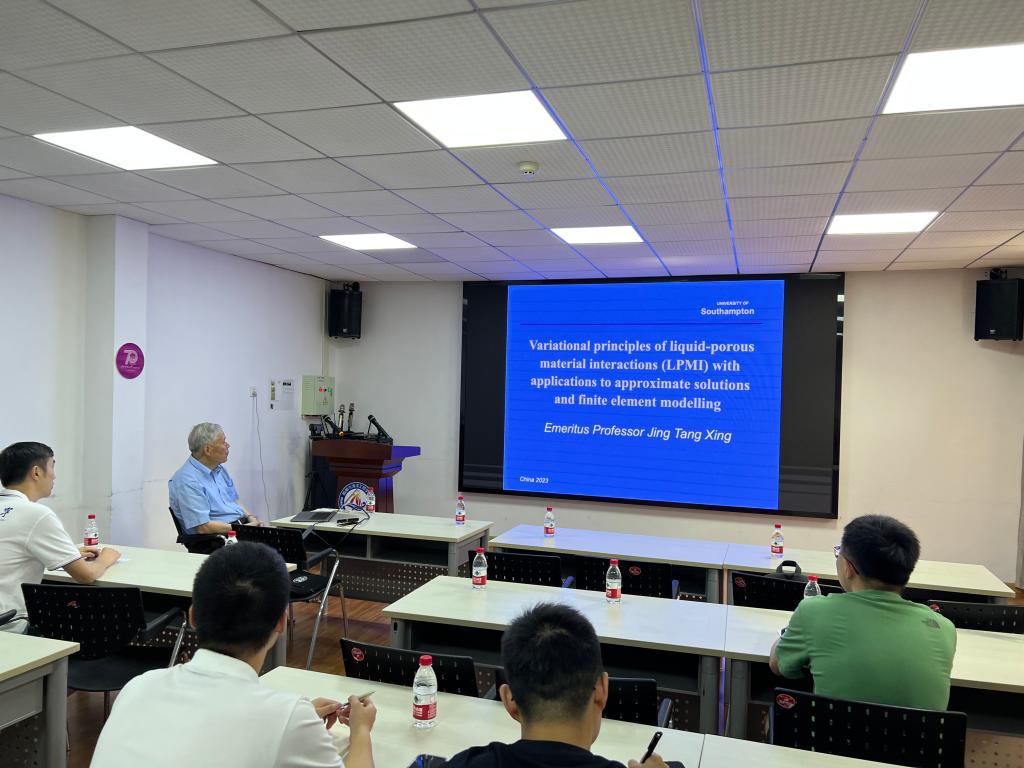 的师生带来了四场精彩的学术报告。涉及船舶推进装置与船体耦合振动、水动力相互作用的数值模拟、流固耦合动力学的数值方法及其在工程中的应用,以及格子Boltzmann方法的发展等前沿科学问题。报告的深度和广度均显示了邢景棠教授在流固耦合动力学和船舶工程领域的卓越学术造诣。
