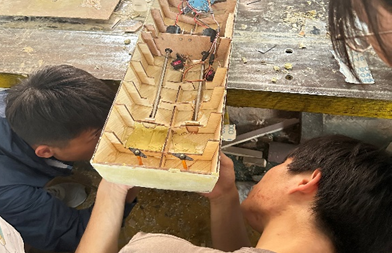 实习首日,学子们在专业工程师的指导下,学习如何根据设计要求绘制船模图纸。他们认真聆听讲解,仔细研究每一个细节,力求做到精准无误。随后几天,同学们分组协作,有的专注于编程控制,有的则使用雕刻机在木板上雕刻出精细的部件。在雕刻机轰鸣的声音中,一块块木板逐渐变成了船模的骨架和板件。