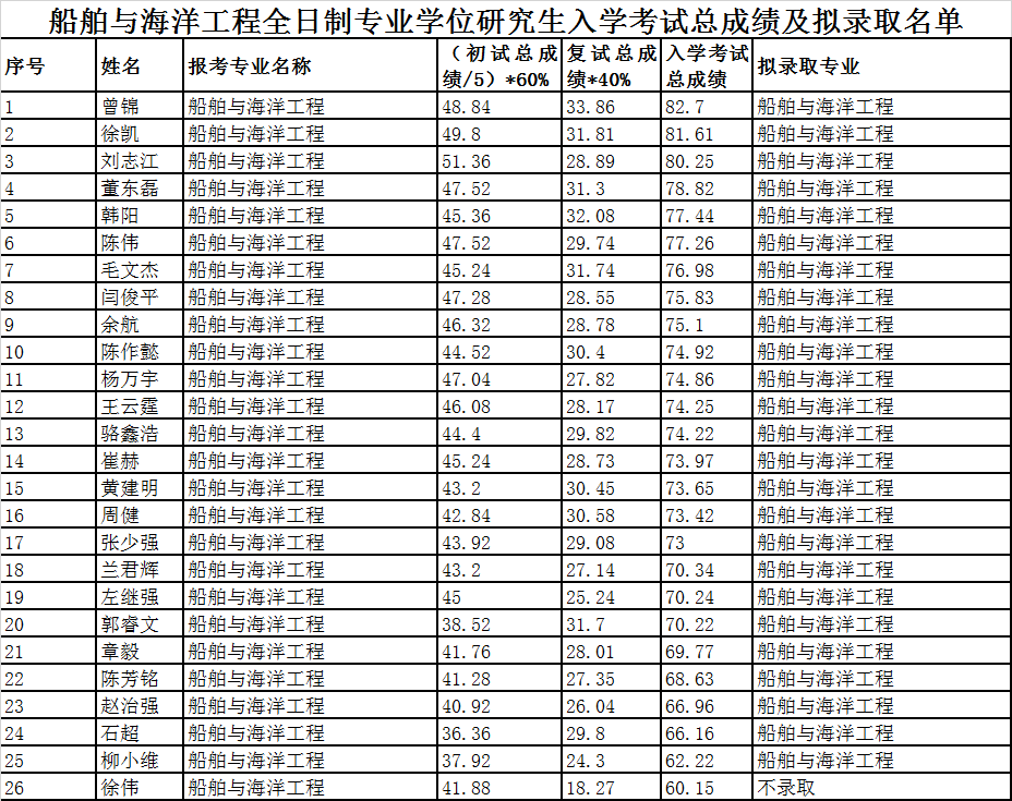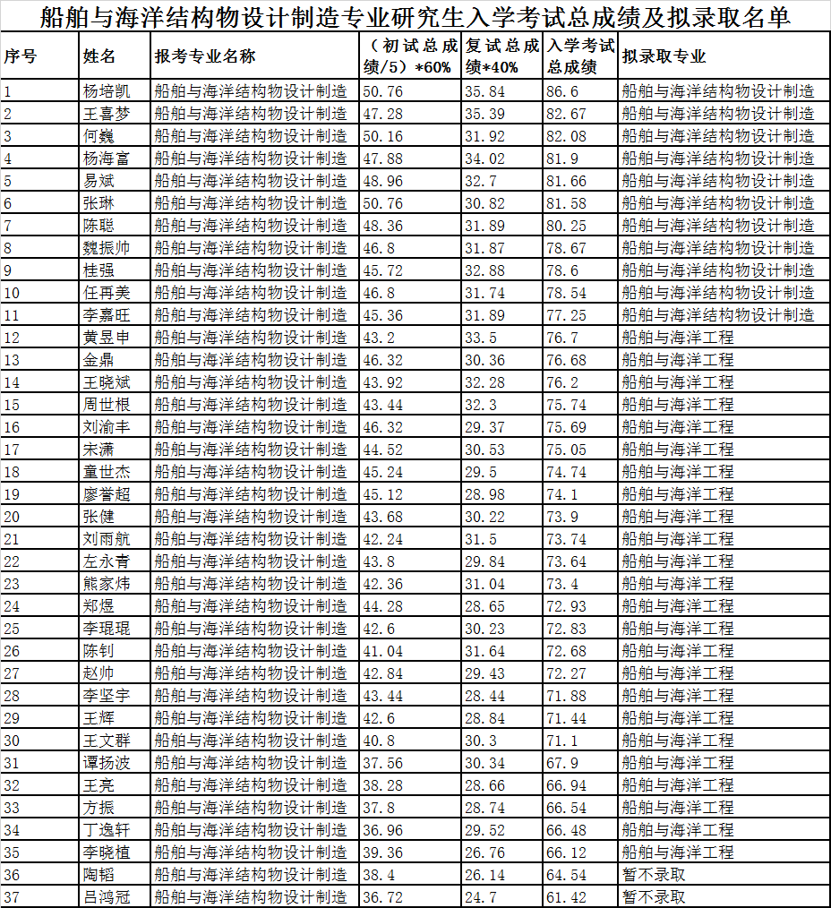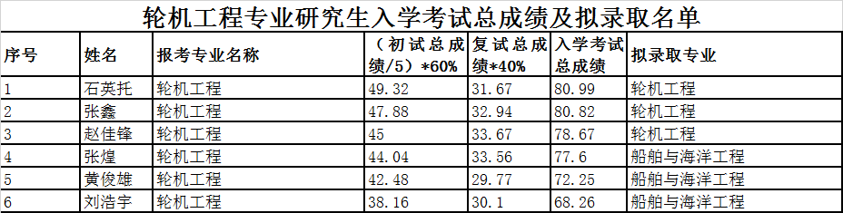 我院已根据复试细则完成了复试工作,现将考生入学考试总成绩及拟录取名单予以公示,公示期为10天。