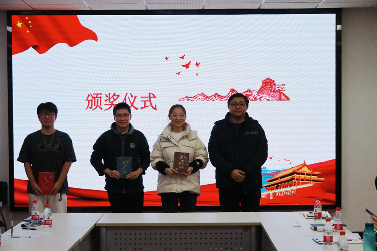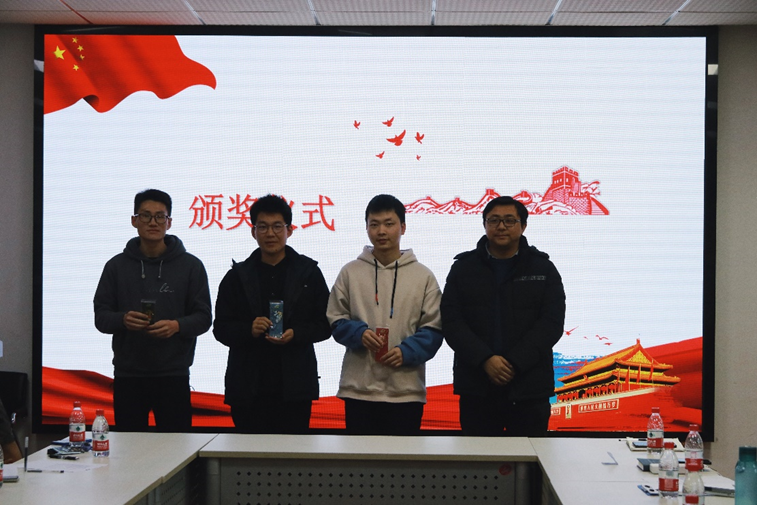 在必答题、抢答题和关键词互动的竞技中,各参赛队伍积极讨论、热情高涨,都有着精彩的表现和发挥。最终根据总体成绩,船海研究生第一党支部斩获一等奖,轮机研究生第二党支部获得二等奖,船海研究生第二党支部获得三等奖,研工组长靳丰富老师为获奖队伍进行了颁奖。