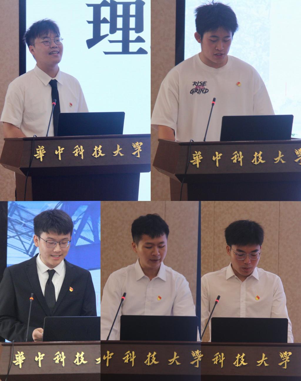 在主题微党课环节,5名优秀毕业生党员结合自己的经历和感悟,分享了自己对党的理论和时事的学习心得。黄群班党支部书记罗江同学,从习近平总书记的讲话中坚定理想信念,将党性和使命高举,同时脚踏实地的从小事做起,为大家做了非常好的表率。于子恒同学在黄群精神的洗礼下,学习科创两开花,并选择留在本院继续深造,坚定了他“兴船报国”的梦想。曹栋同学坚定的选择了成为研究生支教团的一员,即将前往基层一线完成志愿接力。郭文轩同学在支部书记岗位上认真尽责,还不忘提醒同志们擦亮党员身份、强化组织观念。周锦龙同学作为学校青马班一员,就业时选择到西部去成为一名基层选调生,继续服务党的事业。