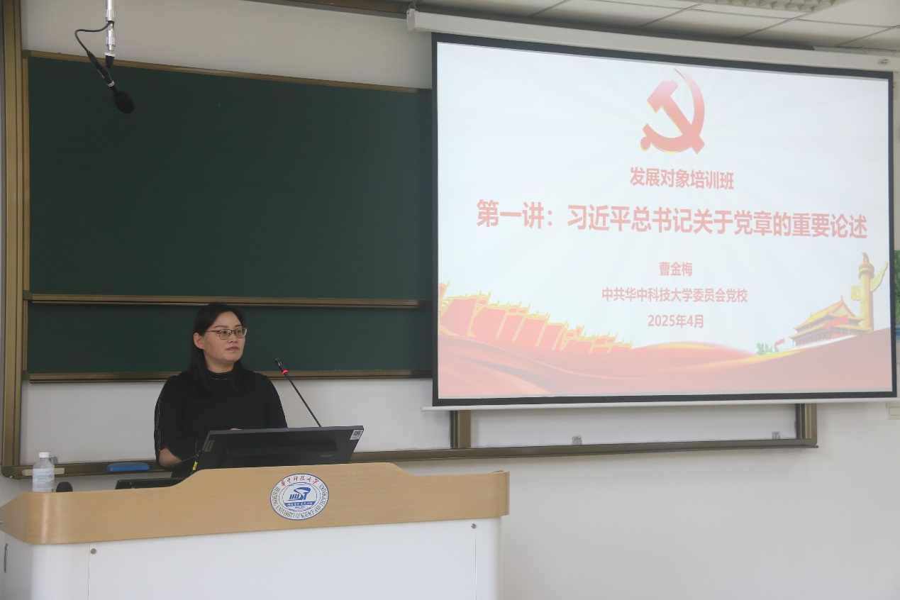 曹金梅老师围绕“学党章强党性,融小我于大我”展开授课,首先带领学员回顾党章建设的历史脉络,从一大纲领到二十大党章的修订,展现党与时俱进的理论品格。她强调,党章是党的总章程,认真学习党章是党员的基本功。在讲解党的宗旨与纲领时,她以脱贫攻坚、科技创新等实例,诠释“全心全意为人民服务”的深刻内涵,并寄语学员争做“有理想、有本领、有担当、有道德、有纪律、有情怀”的“六有大学生”,将个人成长融入民族复兴伟业。“当个人理想与党和国家的事业同频共振,青春才能绽放出最耀眼的光芒。”曹老师的话语引发全场热烈掌声。