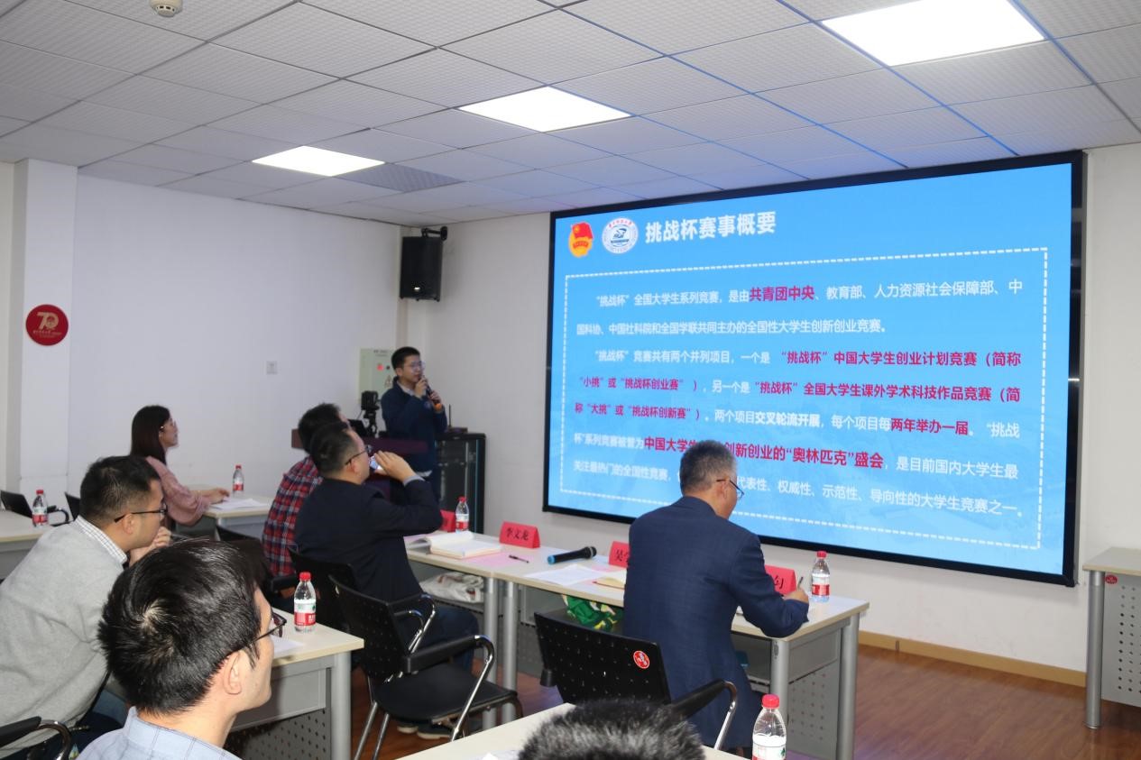 会上校团委吴学兵为大家介绍了挑战杯竞赛,他从参赛资格、作品类别、评审程序、典型项目等四个方面向与会师生详实生动的介绍了挑战杯各项赛事具体情况,同时介绍了我校获奖情况及部分获奖项目,让足球直播857