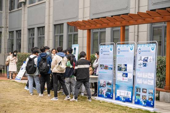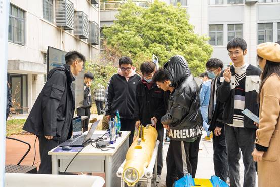 展出团队走心推介,创意频出。展出团队师生以丰富的内容、新颖的呈现形式引得前来参观的同学们驻足学习,发放课题组宣传页、邀请同学们现场体验科研作品、一起探讨航行器动作控制原理……各展区研究生们细致讲述着船舶知识,创意游戏区前欢声笑语,久久洋溢在院内广场。