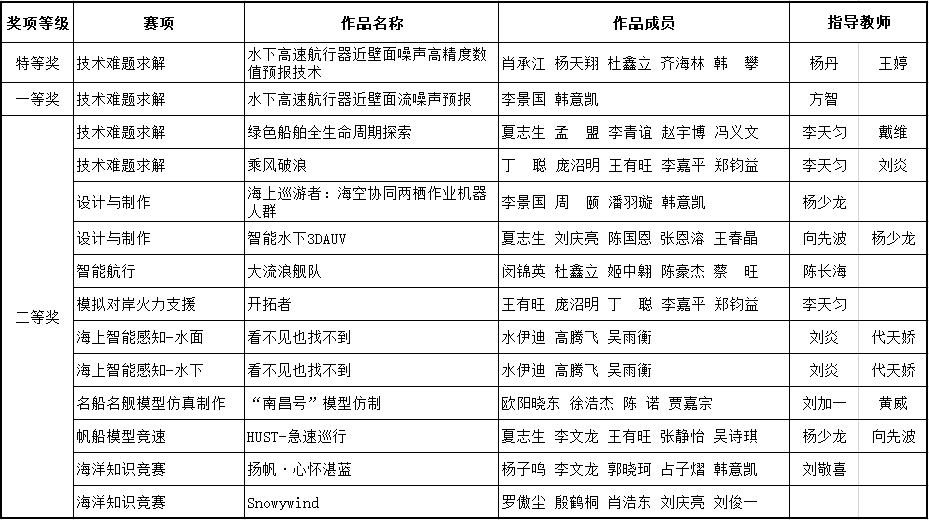 积极组织并参与各级各类科创赛事,顺利承办本届全国海洋航行器设计与制作大赛华中区域赛。科创活动覆盖全体本科生,科创育人成效显著,并推动产学研一体化发展,拓展船海学科建设和专业发展空间,切实增强船海学生的综合素质、原创能力及实践动手能力,为“加快建设海洋强国”做好青年人才储备。