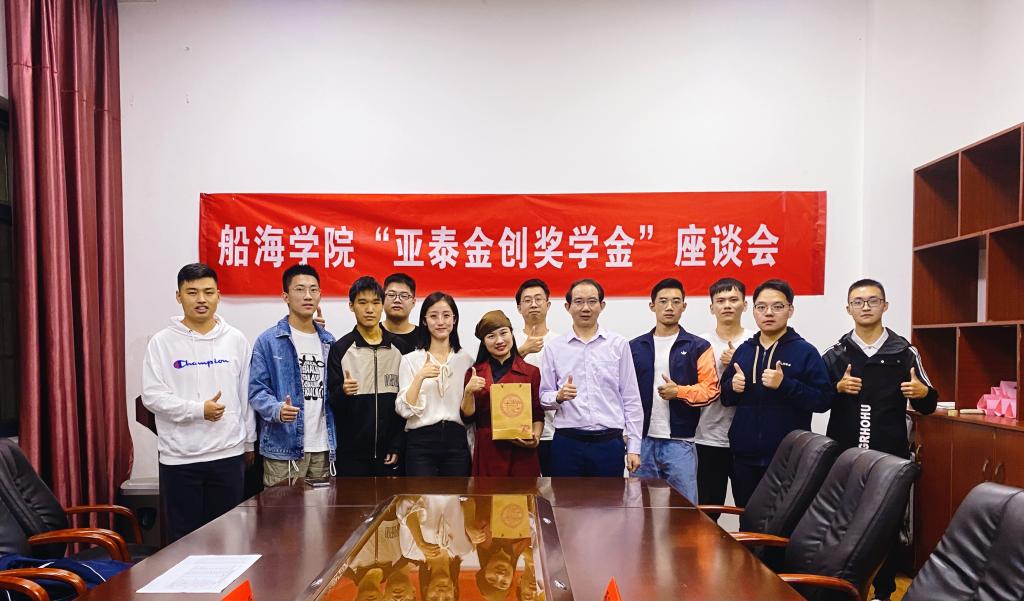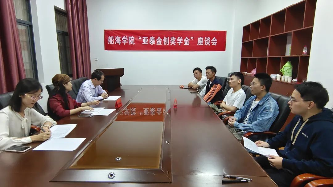 在船池会议室举办“亚泰金创奖学金”座谈会。深圳市亚泰光电技术有限公司副总经理、党支部书记刘依霞,足球直播857