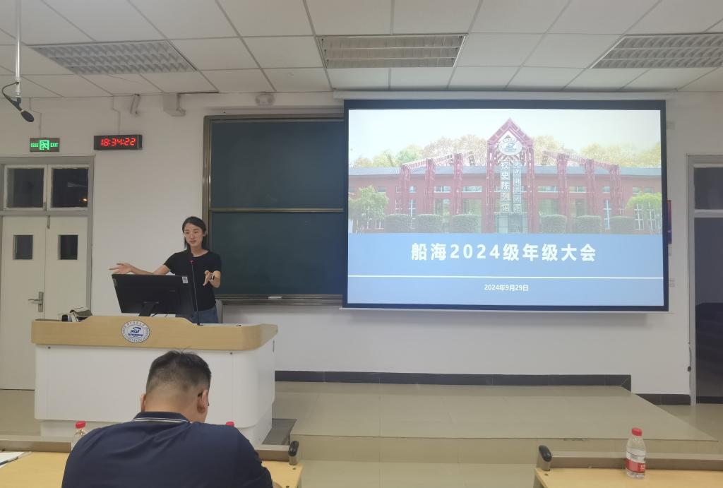 党委副书记李周密、全体学工组辅导员、24级研究生班主任及2024级全体本科生参会。大会由2024级辅导员杨冰主持。